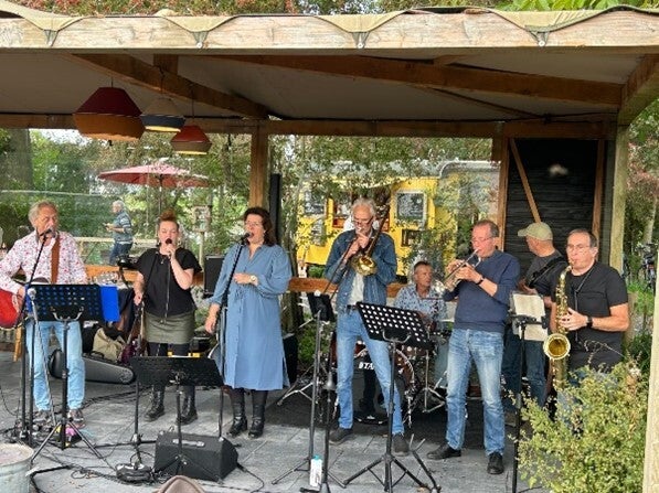 De Noord-Hollandse 5-mans formatie speelt in 2 sets met veel enthousiasme blues-, rock- en popsongs uit hun jeugd.